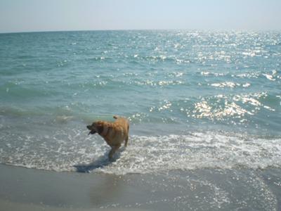 Just some new shots at Venice Dog Beach. These are recent. 4 years later than the other article. As you can see, Mia has grown and still enjoys the water a lot. On this day, 4/19/11 at 3 PM. on a Tues., many other dogs and owners are enjoying it too. One dog owner even came by sailboat with her best friend. With the airport nearby, you can watch the planes come and go at close range! They often look like they are going to land on the beach. I have also seen manatees and dolphins in the shallow water at this beach. Last photo is on the way home and speaks for itself. LOL